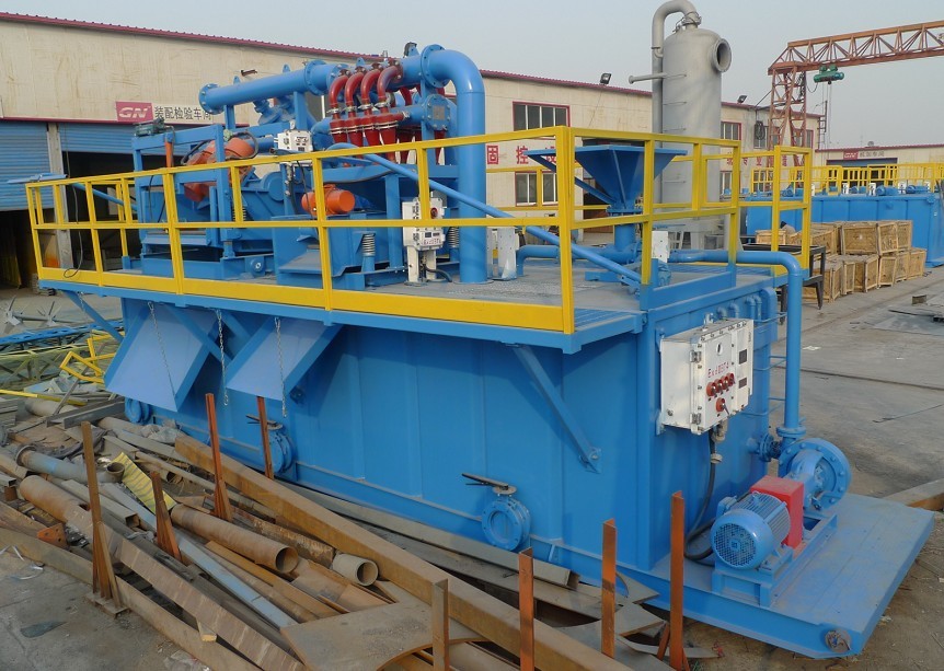 ?印度尼西亞客戶所要處理的流量是60m3/h,定向穿越系統(tǒng)設(shè)備主要包括 1,ZS63×125-3振動篩(其中加上了兩個10〃 除砂旋流器) 2,CNQ60×160/4-8除泥器 3,射流混漿裝置(混漿漏斗和砂泵) 4, 兩個配套砂泵提供動力裝置 5,泥漿罐及其附件