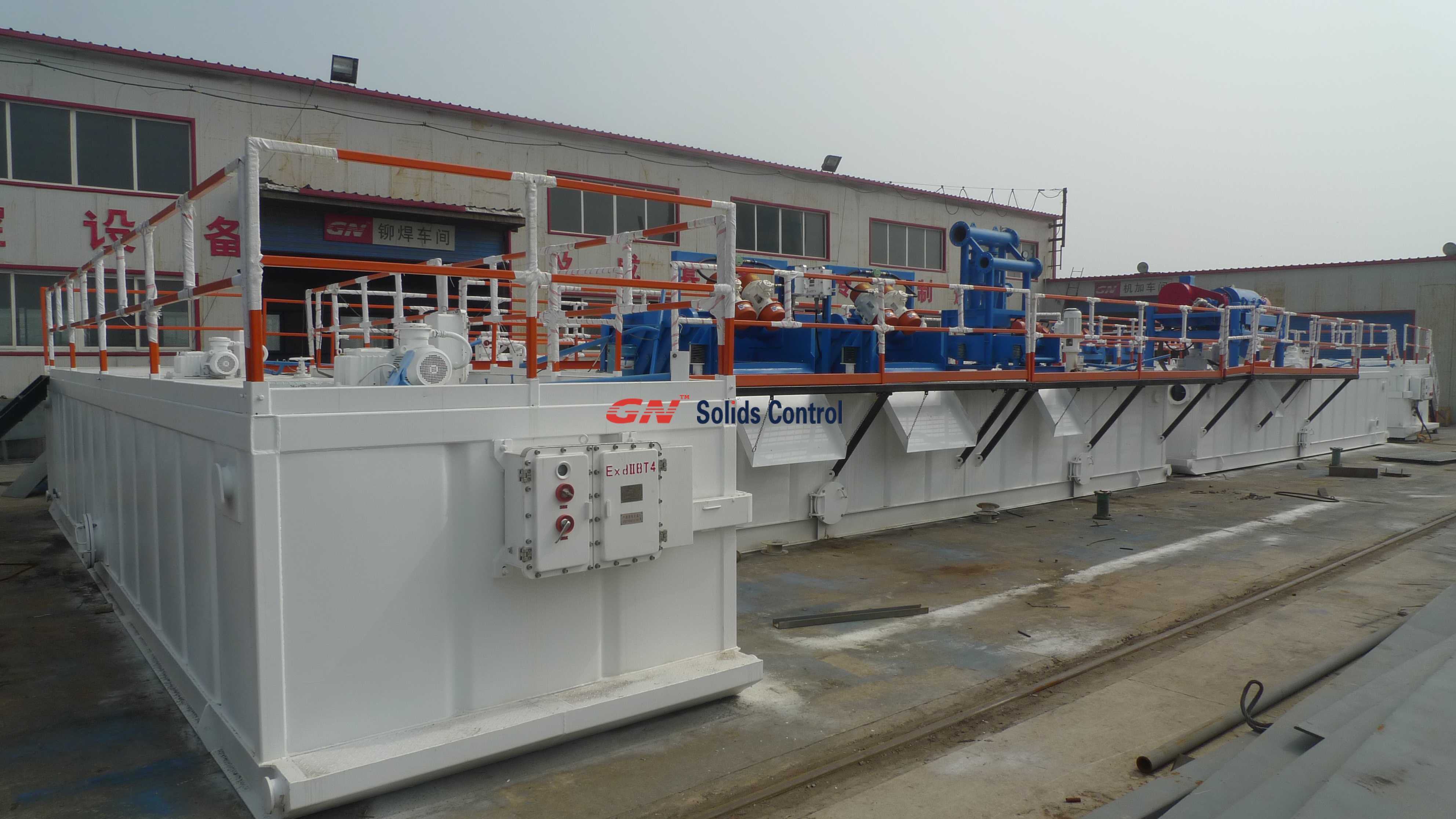 XJ550固控設(shè)備包括振動篩,除砂器,臥螺離心機(jī),泥漿攪拌器,泥漿槍,沙泵,泥漿罐等。