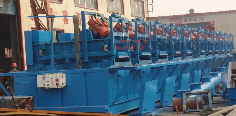 該套系統(tǒng)使用了11臺(tái)振動(dòng)篩,另有3臺(tái)除砂清潔器,3臺(tái)除泥清潔器,由75KW砂泵給其提供動(dòng)力!